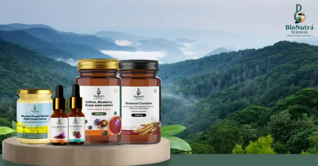 Our primary focus is on human nutrition, many products customized to specific human nutrition requirement for a daily basis, we manufacture highest quality-standard products from very special raw materials from mountain belts and valleys away from pollutions and grown in the biodiversified forests patches, they are highly potent in their natural occurring forms, clean label is our motto, we built this brand with utmost care & passion. Every raw material has been hand-picked specially for specific nutritional values. They are true treasures of Indian mountain regions, untouched by industrial pollutions, away from the national and state highways, away from the conventional farming sectors. We use these raw materials, meticulously hand-picked for manufacturing our high-quality products in our GMP facilities in Europe and in India with high precision and hygiene. At BioNutra Sciences we are specialized in dietary/ food supplements in vegan, vegetarian, plant-based and non-plant-based capsules, softgels, liquids, powders, superfoods, functional tea, nutrition rich beverage ready to mix spice mix, golden milk from Turmeric and other spices, super-greens for adults & gummies for children, adults & elderly.