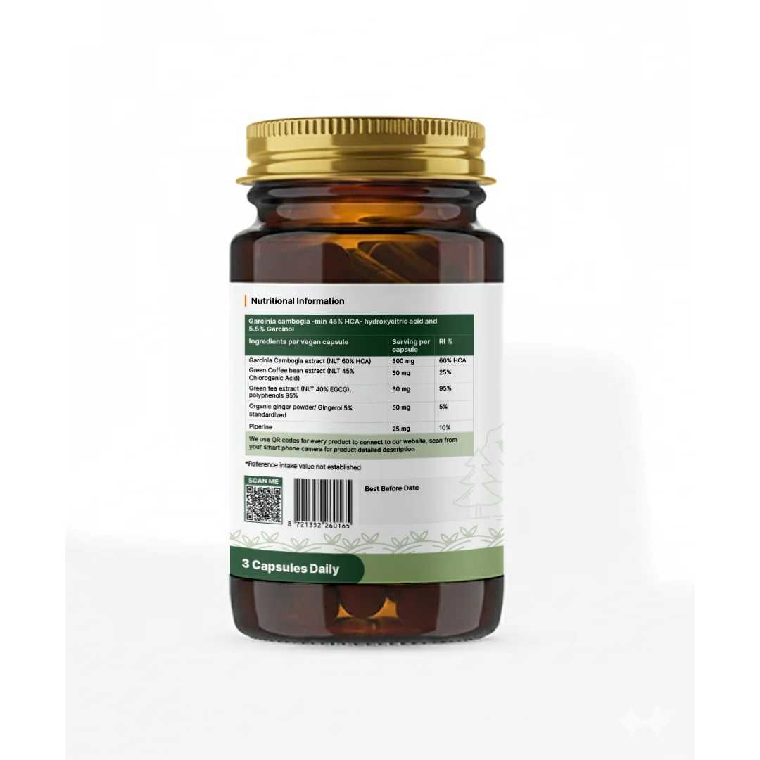 We have used Garcinia Cambogia extract as a main ingredient with 60% HCA content both from the skin and the fruit, and Green Tea and Green coffee bean extracts as a bonus and organic ginger for digestion and immunity, plus black peer for better absorption.