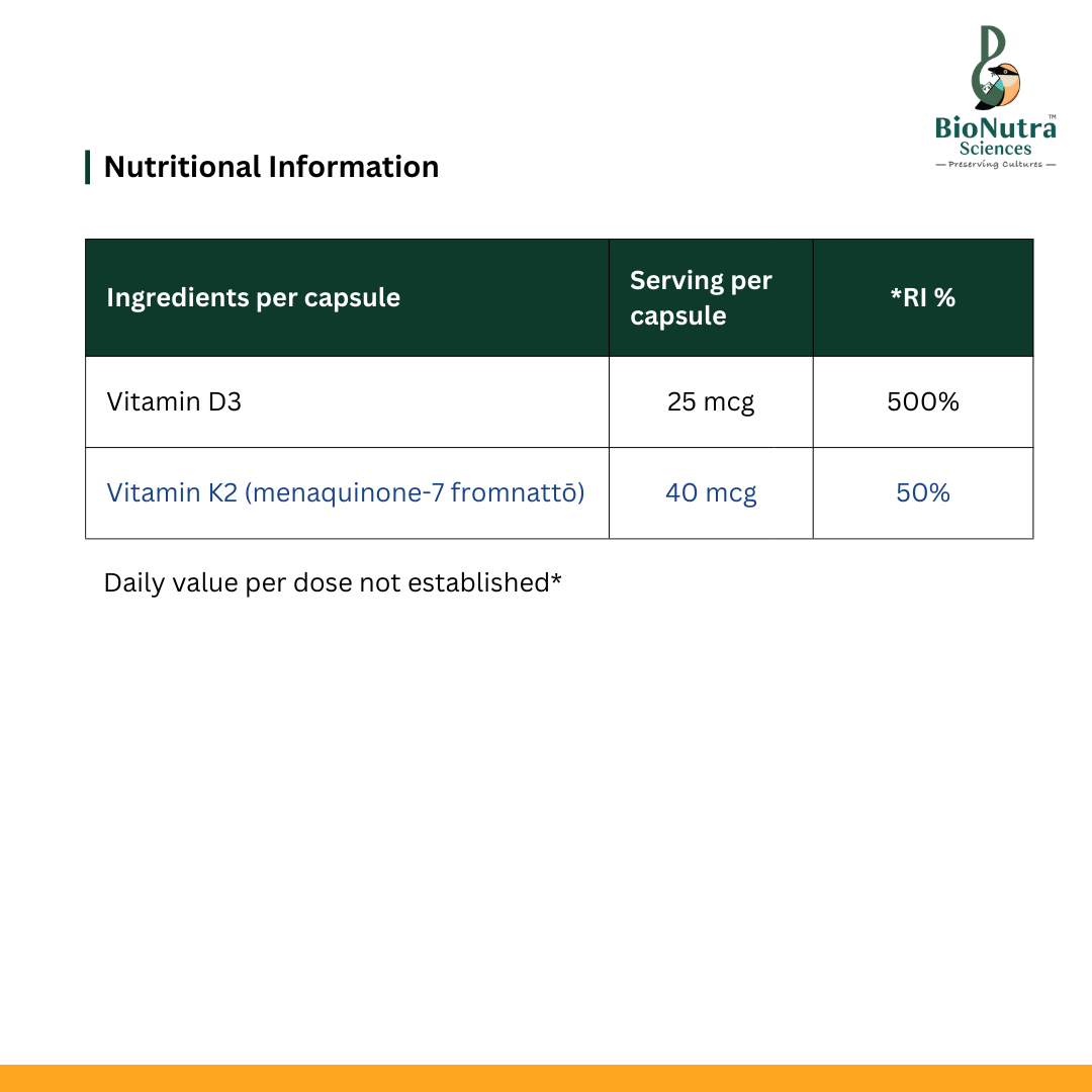 *For information pls read our blog on Vitamin D3, Vitamin K2